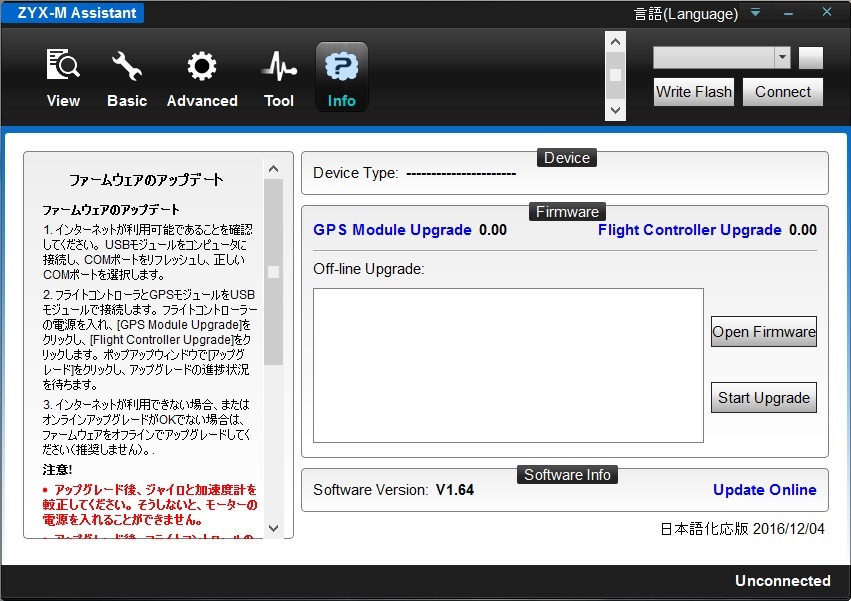 PDFファイルは、こちら現在のアプリは、Ver. 1.64 ハードのバージョンは、 GPS:1.20 FC:1.40