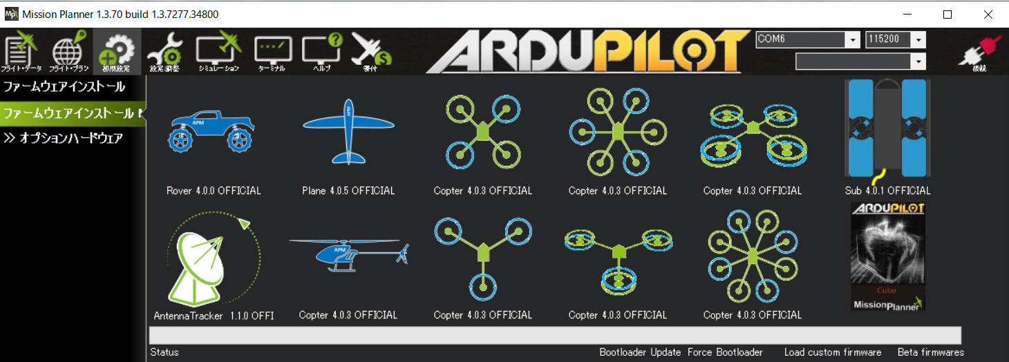 MissionPlanner をインストールします。https://firmware.ardupilot.org/Tools/MissionPlanner/