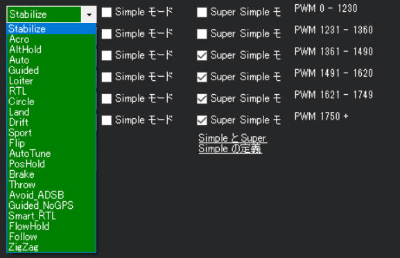 | 2 | Acro | 高度のみ保持し、機体の安定は保証されない。 |