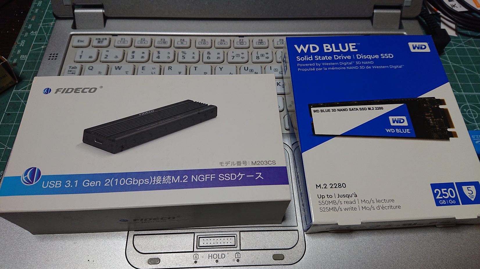 SSDは、 M.2 2280 SATA3規格の250GB「WD BLUE」、