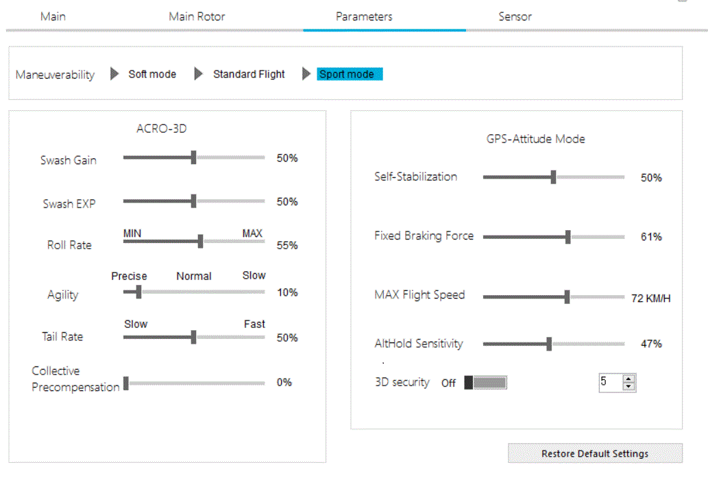 操縦初心者であれば、少な目に設定した方が良いかもしれません。